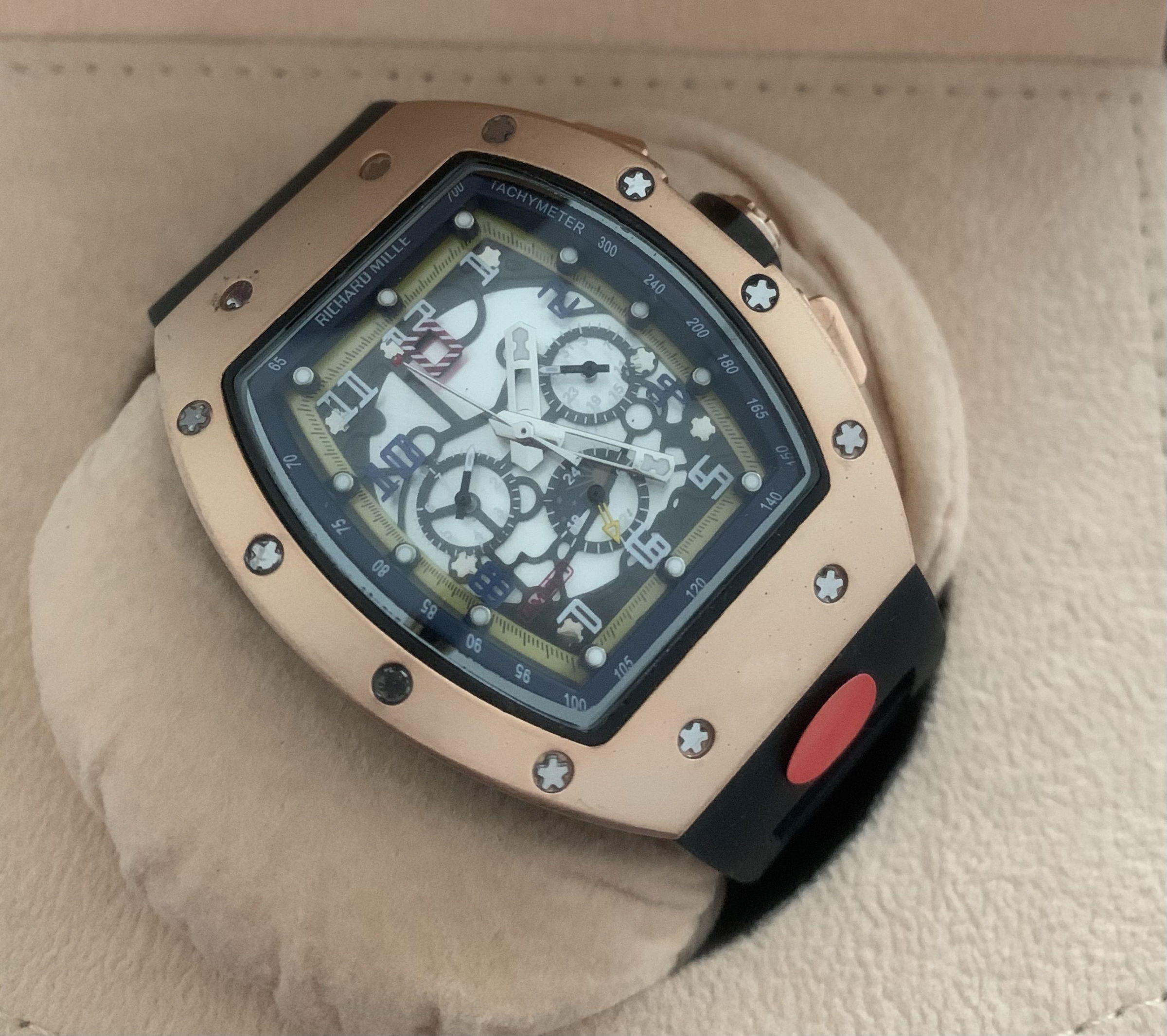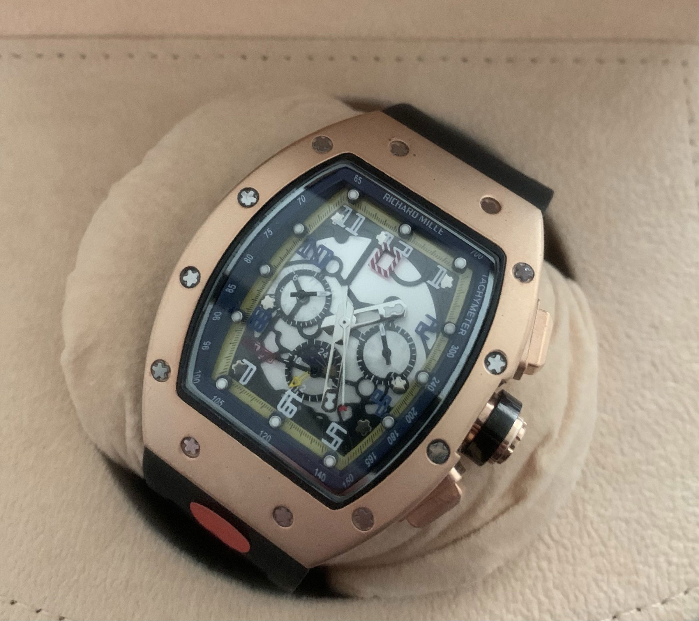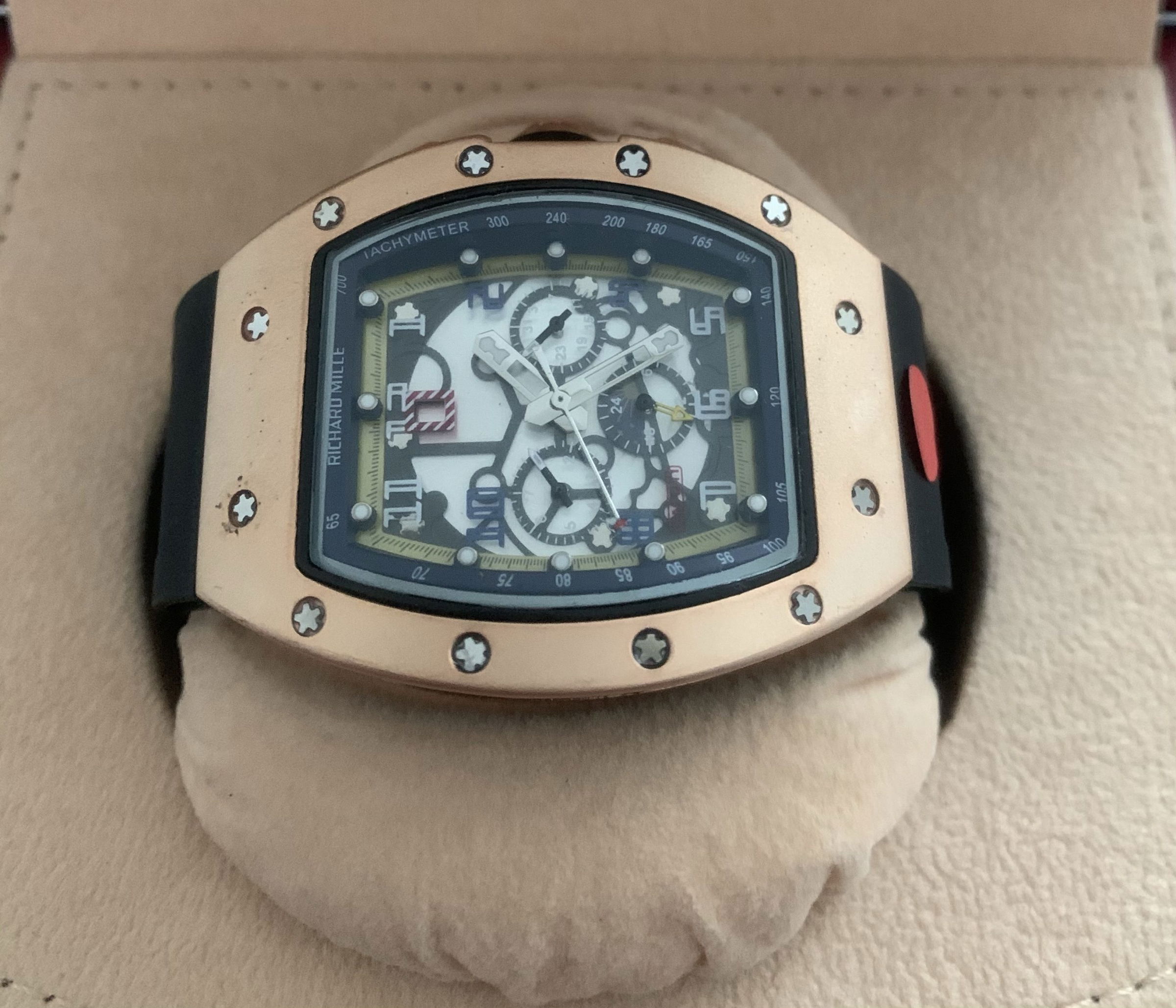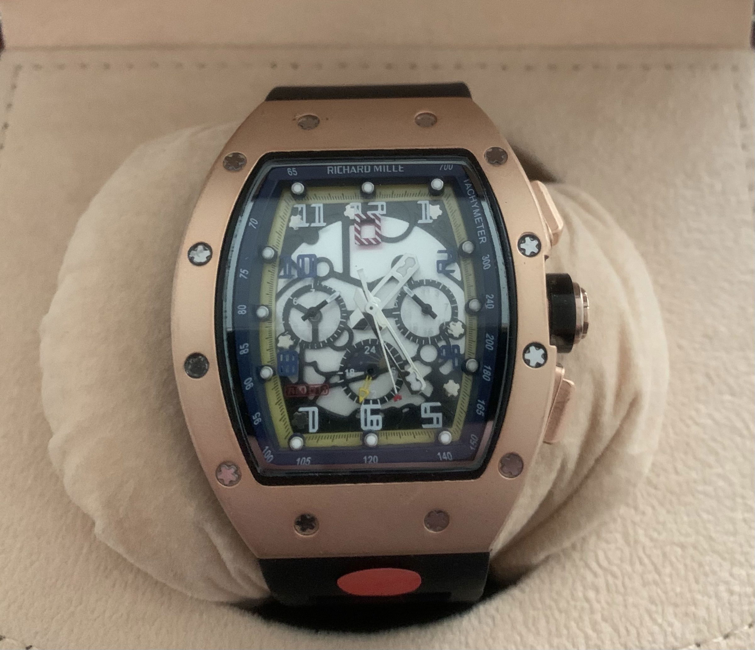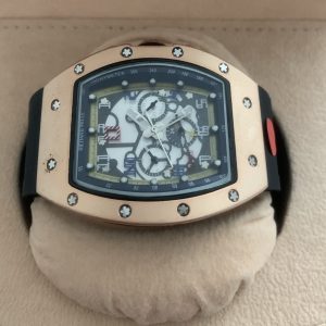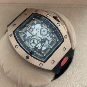 – Rolexkroon in het glas boven de 6 gelaserd