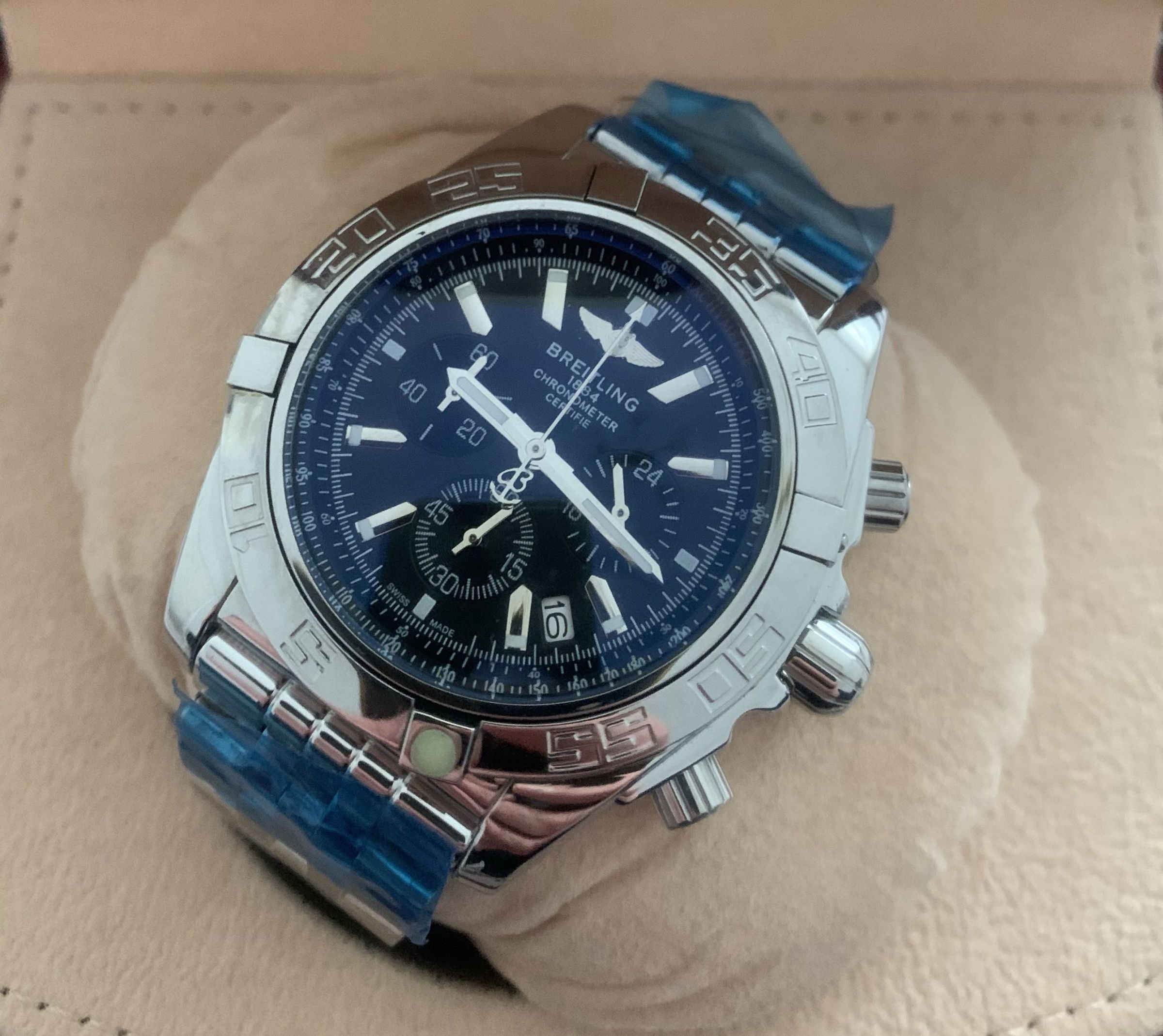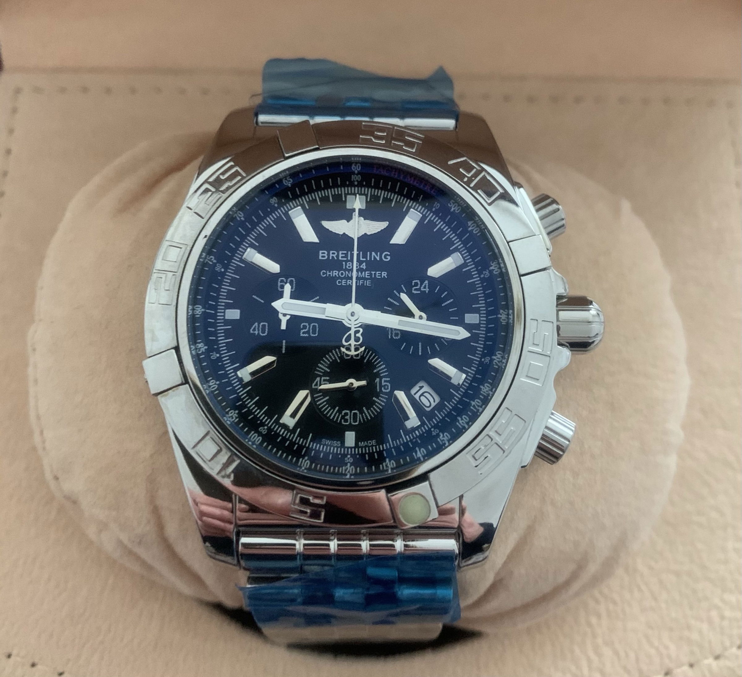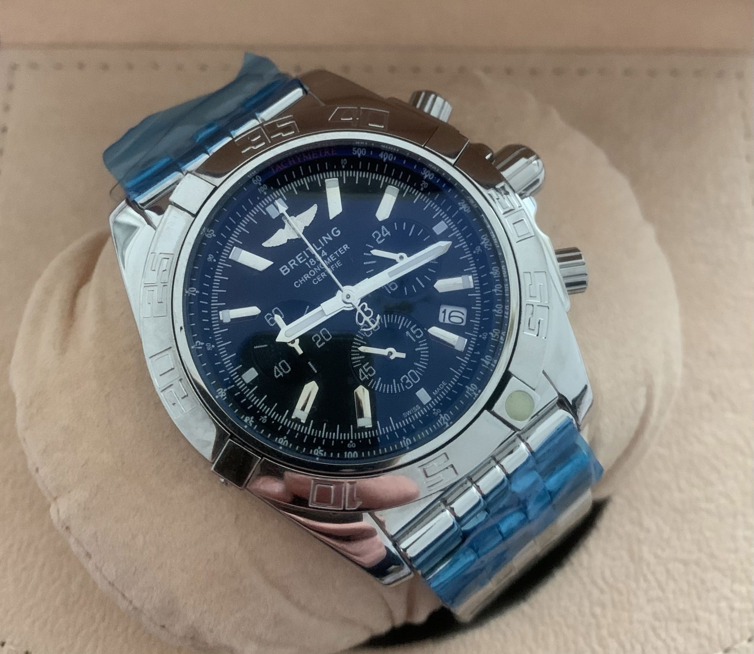 – Rolexkroon in het glas boven de 6 gelaserd
