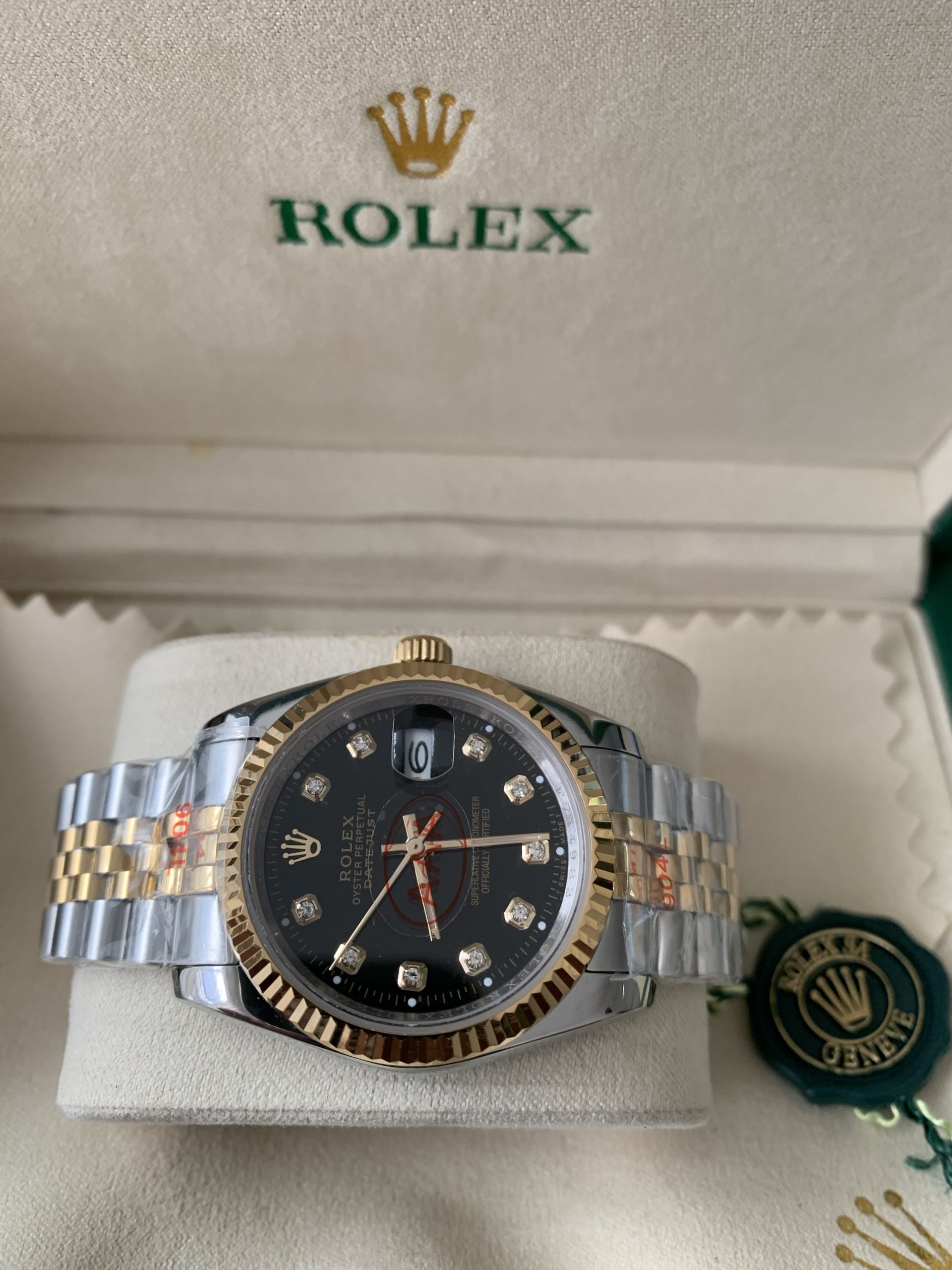 – Rolex graveringen rondom de binnenplaat